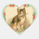 Adorable Victorian Calico kitten with heart border and paintbrush. Small heart accents in light green and coral.