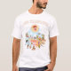 Shirt shows a whimsical cartoon of Southern California - classic characters enjoy the warm California sun who shines high above it all.