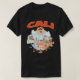 Shirt shows a whimsical cartoon of Southern California - classic characters enjoy the warm California sun who shines high above it all.
