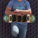 A fun cool skateboard for the lover of cool custom skateboards and California culture! Features custom California text and logos, wood grain inspired background, wood inlay inspired stripes, and three California bears! Fully customisable to add names, images, and more if desired. Enjoy!