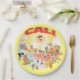 A cartoon of Southern California – showcasing Los Angeles, Anaheim, Long Beach, San Diego. Cartoon characters of all sorts swim and splash and play beneath the bright California sun shining high above it all.
