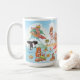 a spectacular cartoon of Southern California – Los Angeles, Anaheim, Long Beach, San Diego. This charming scene has it all – a surfer hangs ten while a mermaid lounges on a rock, a killer whale leaps out of the water, a muscular beach couple both flex to impress as a T-Rex roars a challenge and much more…