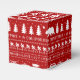 California Christmas Gift Box. Green and white knitted sweater style holiday pattern with California state bear, cute cars, reindeer, and a dog riding a skateboard. A California Christmas: Love, Joy, Peace, Sunshine. Original Xmas gift package for Californians.