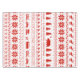 Cute California Christmas Tablecloth. A fun table covering for your holiday celebration. This festive red and white Christmas pattern features the California state bear, pine trees, a dog riding a skateboard and cars with a Christmas tree and a surfboard. Text: “A California Christmas, love, joy, peace, sunshine.”