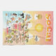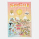 Charming cartoon of Southern California – Los Angeles, Orange County, and San Diego with classic California scenes - a surfer hangs ten while a killer whale leaps out of the water, a muscular beach couple both flex to impress, zoo animals wait for tourists and much more...