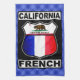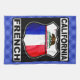 California French design, in the style of a cool American road route sign. The text California French is along the top and bottom, with the flag of the State of California and the flag of France inside the route sign. Great for Californians of French descent, and for ex-pats in the Republic of California!