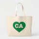 This tote bag features a vibrant green heart containing the bold, white, upper case letters CA, the official abbreviation for the state of California, the golden state.