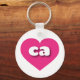 This keychain features a vibrant hot pink heart containing the bold, rounded, white lower case letters ca, a playful version of the abbreviation for California, the golden state.