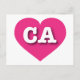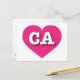 This postcard features a vibrant hot pink heart containing the bold, white, upper case letters CA, the official abbreviation for California, the golden state. The reverse side of the postcard is blank, awaiting your customised text or handwritten sentiments.