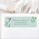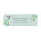 Unique return address label featuring a hand-painted Anna's Hummingbird and flowery branches on a light blue background. Anna's Hummingbird can be found year-round resident in California, breeding in winter and nesting during the rainy season in gardens and parks to chaparral, frequenting feeders and native plants.