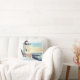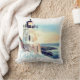 beautiful watercolor landscape painting Throw Pillow represents california landmark of lighthouse by sea during sunset scene.