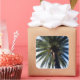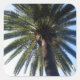 Photo of looking up into the fronds of palm tree with blue sky behind. Palm trees line the park at La Jolla Cove which is a park in downtown LJ that includes a grass park and access to the ocean. Colour photo of ocean beach seaside taken in La Jolla, California. La Jolla is a suburb of San Diego near the US and Mexico border.