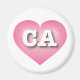This magnet features a cool pink heart with a white-washed center containing the bold, white, upper case letters CA, the official abbreviation for California, the golden state.