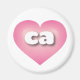 This magnet features a pink heart with a white-washed center containing the bold, rounded, white lower case letters ca, a playful version of the abbreviation for California, the golden state.