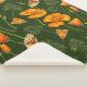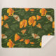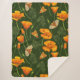 California poppies and moths on dark green sherpa blanket