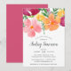 Elegant floral baby shower invitations feature a cascade of watercolor poppy flowers in vibrant shades of peach, pink and violet. Personalise with your baby shower details beneath in a chic mix of block, serif and calligraphy typefaces.