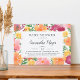 Chic floral baby shower invitation features a background pattern of vibrant, colourful poppy flowers in watercolor hues of pink, orange and violet. Personalise with your baby shower details in inky off black lettering, with the mother to be's name in modern hand lettered style calligraphy script.