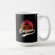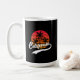 California mug with a design that features a Retro sunset and palm trees on black background (you can change the colour). This design also has California in a handwritten font with a swash tail glyph for that stylish Retro look. This mug is just for you if you are from California or to get as a gift or souvenir.