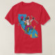 I give wanted to give this a 4 instead of a 5 because these Basic DARK T0shirts run unexpectedly SLIM or Narrow. Which is great if you do not have a potbelly, but I have a paunch. It isn't the shirt's fault that I've got a beer belly. The design and shirt itself is a quality cotton shirt. The color is more of a deep purple, but still a very pretty color. The Basic DARK T-shirts run a bit SLIMMER than the Basic Ts. The neck is a fraction narrower (or seems to be narrower) also. I'm a paunchy middle-aged woman and my neck is 12 inches (31cm) thick and the neckline fell about the same as in the photo of the man, and I had the desire to tug it a bit. So if you're a thick necked man or like loose shirts, be aware these are slimmer shirts. Once I get rid of my lockdown paunch it'll look great. The shirt washed well in cold water with no apparent bleeding. We don't have a dryer, so it hung dry. Did not shrink. Love the colors and the design. The design looks smaller on my shirt than it does on the model on-line. But still, it looks good on the shirt. The printing looks as it does on the model, just the size seems fractionally smaller. Washed garment in cold water, hung dry and design appeared unaffected.
