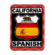 California Spanish design, in the style of a cool American road route sign. The text California Spanish is along the top and bottom, with the flag of the State of California and the flag of Spain inside the route sign. Great for Californians of Spanish descent, and for ex-pats in the Republic of California!