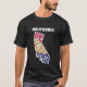 Colourful typographical t-shirt design features California's nickname "The Golden State" is state shaped word art.
