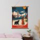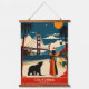 Experience the allure of "California: The Golden State" travel Hanging Tapestry! In this vibrant artwork, a woman in a hat gazes at the Golden Gate Bridge from a picturesque beach, accompanied by a bear. The scene beautifully captures California’s iconic landmarks and natural beauty, with a stylised, colourful sky that evokes the state’s enchanting atmosphere. Perfect for anyone who loves the charm and adventure of California, this piece invites you to immerse yourself in its stunning landscapes and spirit!