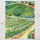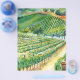 Watercolor painting of the rolling hills full of grapes vines at a California Vineyard.