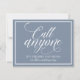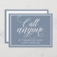 These sketched calligraphy "Call Anyone but the Bride & Groom" card are handy to give out to your wedding party and other important people in your wedding. The design colour is set in dusty blue (blue-grey), but you can change the colour of the design by changing your background colour. **HOW TO CHANGE YOUR DESIGN COLOR** 1) Click the "Personalise" Button. 2) Click the "ClICK TO CUSTOMIZE FURTHER" link at the bottom. Then you will have the option to change your "BACKGROUND COLOR" to your wedding colour. Don't forget to change your text colour to match your design.