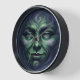 Description add a touch of timeless mystery to your home with this stunning green elemental moon face wall clock featuring one of the four mystical faces from the salon and ritual collection. This high detailed illustration showcases a serene yet haunting green face with swirling purple and teal accents the deep soulful eyes and subtle enigmatic smile. Make this more than just a time piece it's a piece of Gothic fantasy art perfect for an office bedroom or living space
