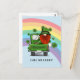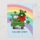 Call Me Lucky Irish Gnome St Patrick's Day product. Funny bearded gnome, travelling in a truck, heading towards a rainbow, and shamrocks in the air. Personalise this template