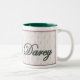 Call Me Mrs. Darcy on a cute pink floral striped background. Who needs a cup of Joe, when you have a cup of Darcy!