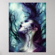 Under a midnight moon, in the deep of the forest, will anybody save you when you hear the Call of the Forest. This AI Fantasy Digital Art Print Portrait in varying tones of blues and purples, adds depth and purpose to the hazy, misty trees which already evoke an unnatural eerie spookiness to the twisting, turning branches of the Haunted Forest.