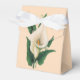 Peach tent-style with white ribbon favour box with a vintage image, on the front and back, of lovely calla lilies. See the entire Mother's Day Favour Box collection in the PARTY FAVORS section.