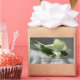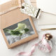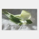 This design features a lovely photograph of white calla lilies and a green leaf resting on soft white lace. Text on reverse is easy to customise for your wedding or other event.