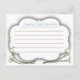 This design features a beige mason jar filled with white calla lilies. A tan and a blue mason jar sit nearby on the oak table along with additional calla lilies that are also resting on the table. A chalkboard hangs on the wall of this rustic but elegant bridal shower advice card. The reverse side of this contemporary design has a trendy pattern along with horizontal lines for your guests to write their advice to you. There is customisable text for you to add your bridal shower information. We also have matching invitations, RSVP cards, Thank you cards and postage stamps.