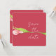 A simple, elegant, floral design with red, white and green colours save the date announcement card! A pretty pastel pink calla lily flower decorates the card aesthetically well on both the sides.
