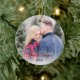 Simple and elegant holiday ornament features a photo on each side with personalised names overlaid in burgundy plum script lettering. Personalised with the year beneath on one side, and your family names on the top.