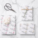 Minimal wrapping paper sheets with faux glitter snowflakes.