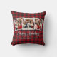 Modern Fun Calligraphy Script 3 Photo Happy Holidays Red Buffalo Plaid Pillow