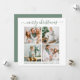 Modern Trendy Calligraphy Script 4 Photo Family Photo Collage Merry Christmas Square Holiday Card - Sage Green