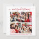 Modern Trendy Calligraphy Script 4 Photo Family Photo Collage Merry Christmas Square Holiday Card - Red with Snowflakes Back