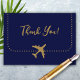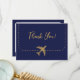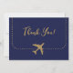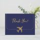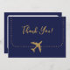 Calligraphy Blue and Gold Boarding Pass Wedding Thank You Card