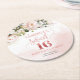 Calligraphy blush pink roses sage 16th birthday round paper coaster