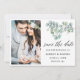 Modern Calligraphy Script, Elegant Watercolor Botanical Eucalyptus Leaves, Greenery Save The Date Engagement Announcement Couple Photo Card