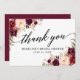 Modern Elegant Calligraphy, Watercolor Burgundy Marsala Floral Bridal Shower Thank You Card