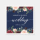 Modern Elegant Calligraphy, Watercolor Burgundy Marsala Blue Floral Wedding Paper Napkin