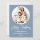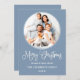 Modern Fun Calligraphy Script Merry Christmas Round Photo Frame Holiday Card - Dusty Blue