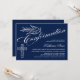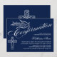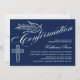 © Socialite Designs. Our beautiful calligraphy confirmation invitation has a dove, cross and beautiful calligraphy text. The background is dark blue. A lovely invitation that is gender neutral and can be used for a boy or girl. Easily replace our template text with your own. All design elements can be moved, resized or deleted.