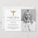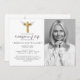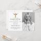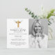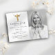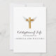 An Elegant and unique presentation for your celebration of life invitation with a cross at the top of the invitation and the custom black and white photo of the beloved deceased. the invitation comes also with calligraphy and a script to decorate it.