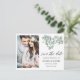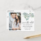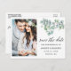Modern Calligraphy Script, Elegant Watercolor Botanical Eucalyptus Leaves, Greenery Save The Date Engagement Announcement Couple Photo Postcard